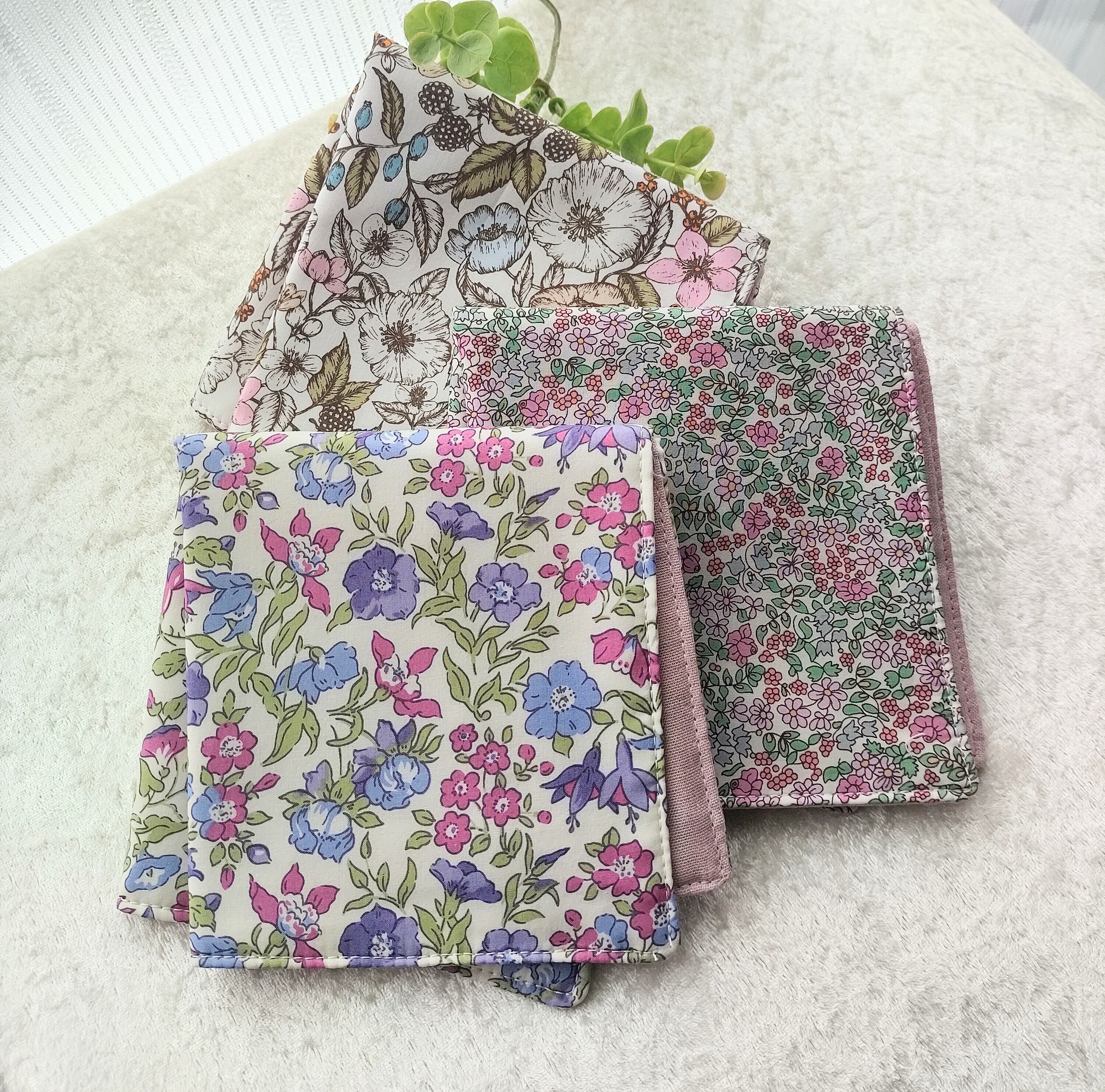 こちらはリバティーのタナローンという《光沢あり》《高級感あふれる》《肌触りのよい》綿とガーゼ4枚を重ねて縫いあげた5重仕立てのハンカチです