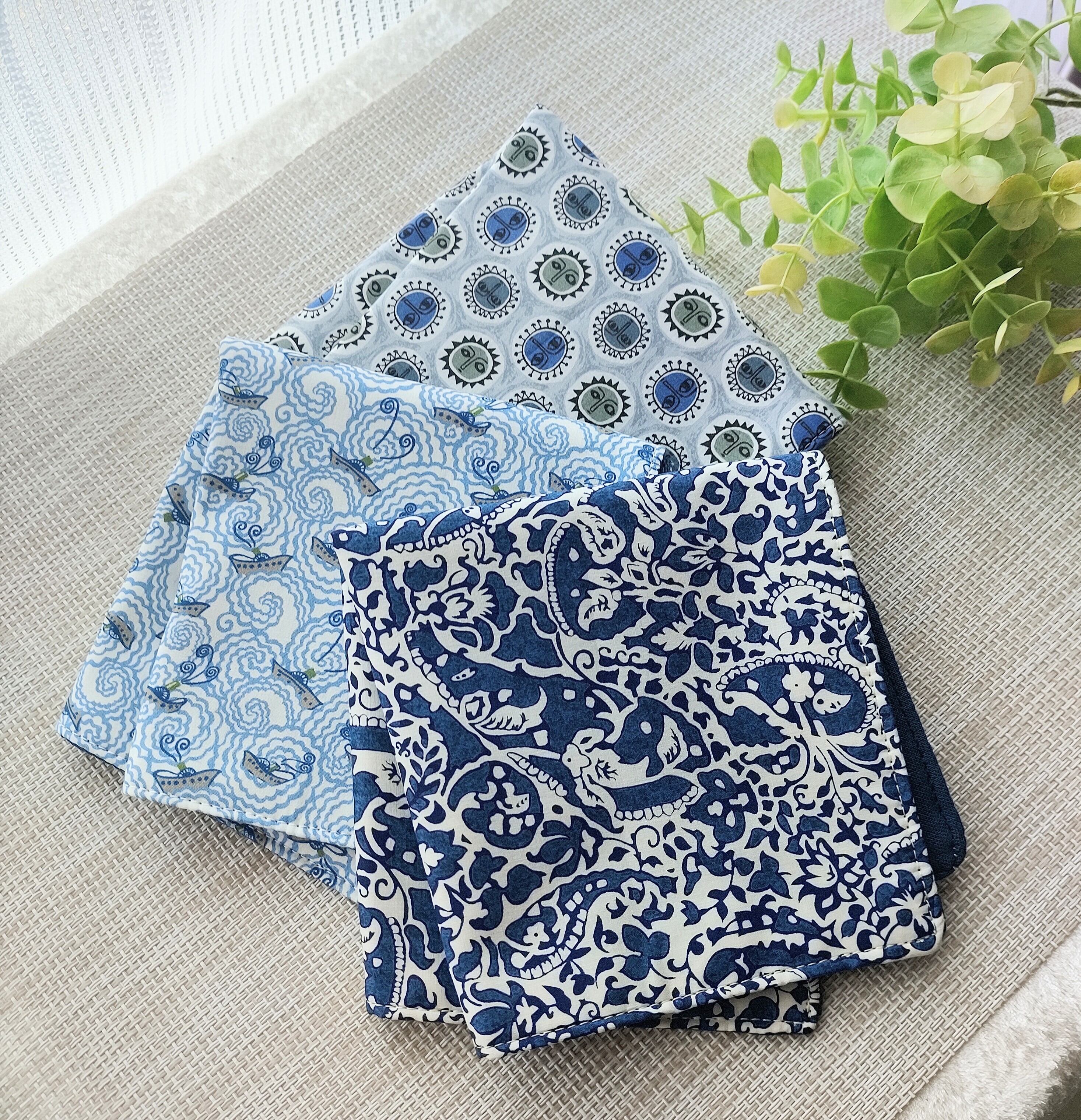こちらはリバティーのタナローンという《光沢あり》《高級感あふれる》《肌触りのよい》綿とガーゼ4枚を重ねて縫いあげた5重仕立てのハンカチです