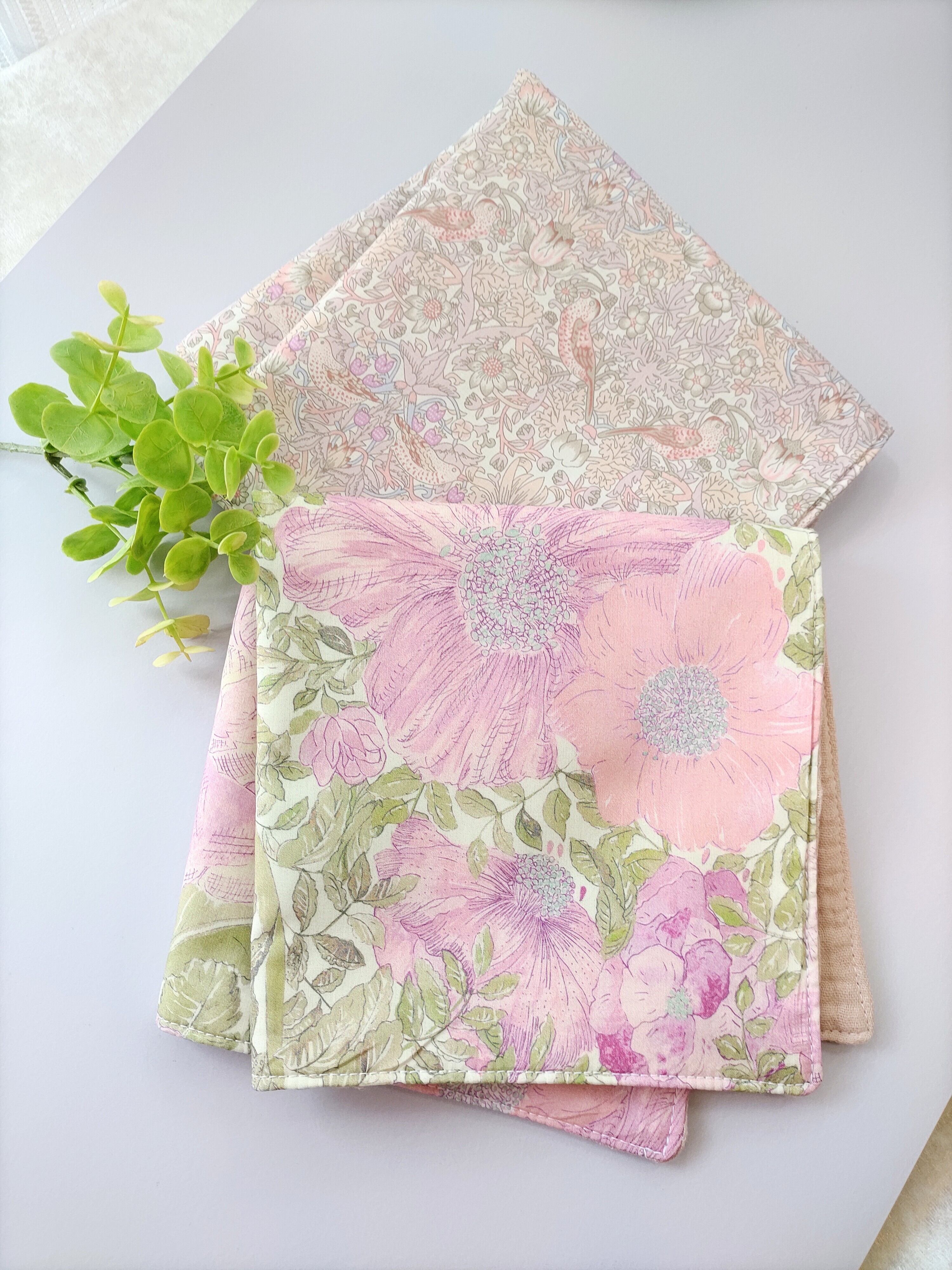 ガーゼ4枚とリバティー1枚を重ねて縫っている5重ガーゼハンカチ