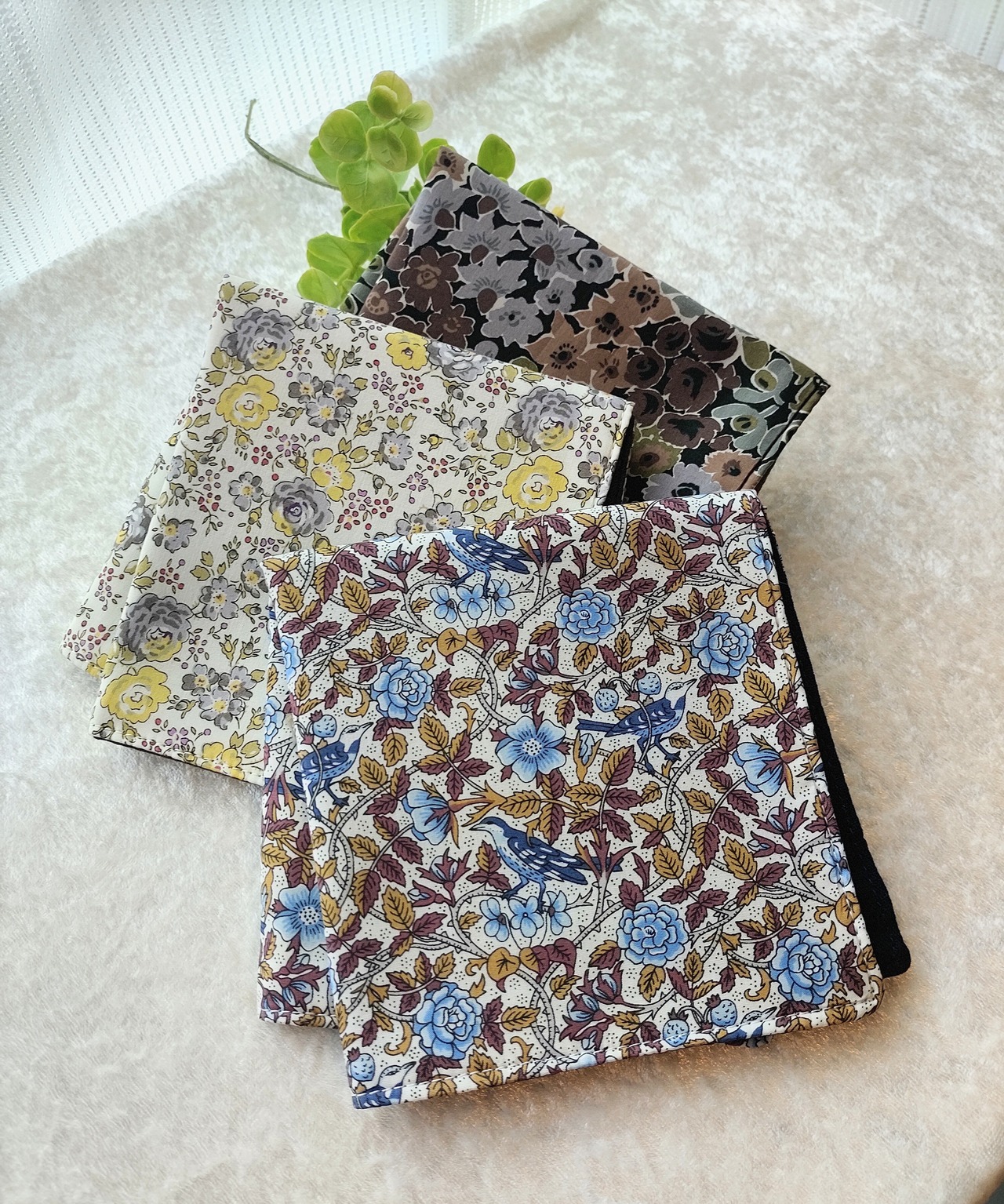 こちらはリバティーのタナローンという《光沢あり》《高級感あふれる》《肌触りのよい》綿とガーゼ4枚を重ねて縫いあげた5重仕立てのハンカチです