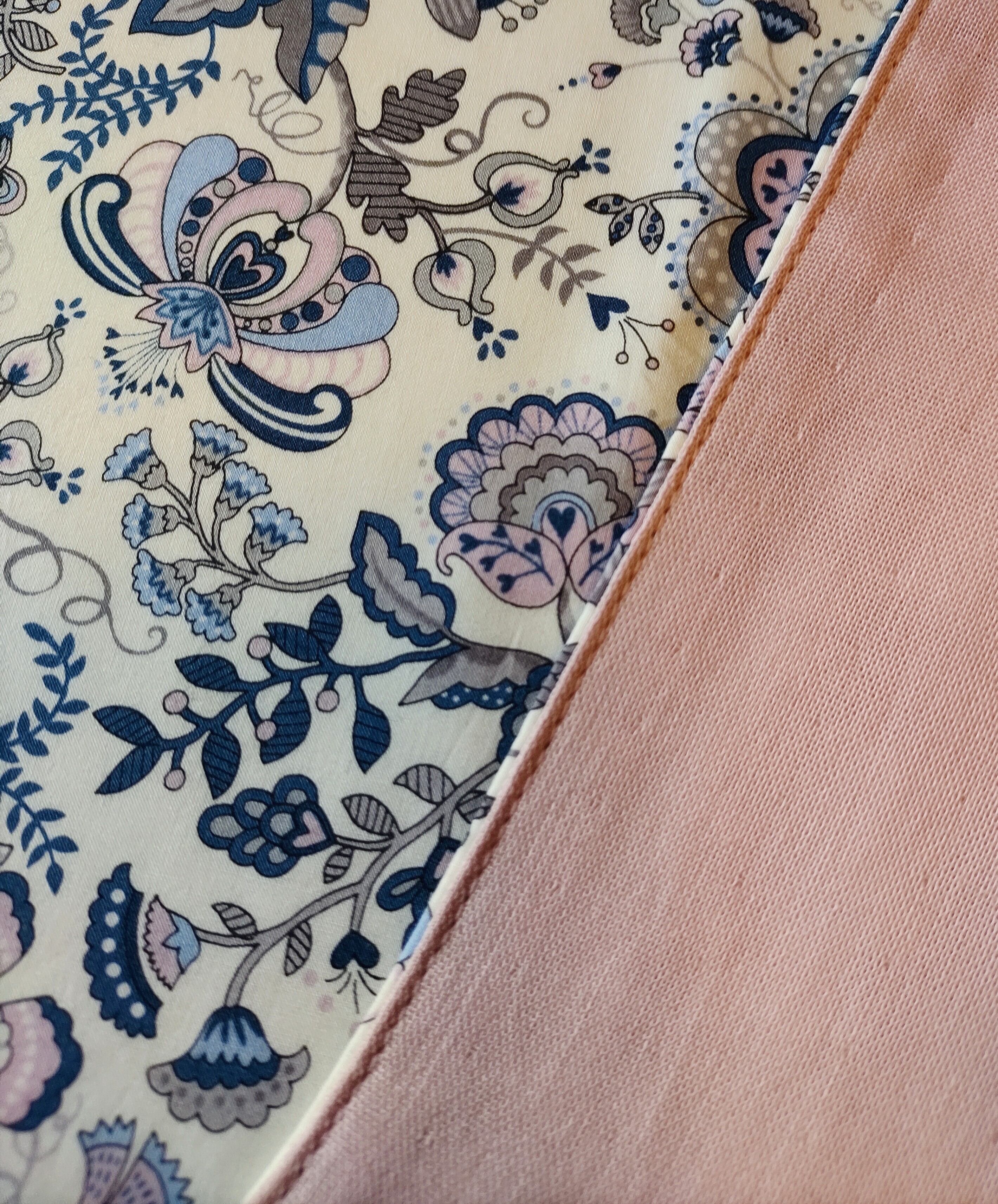 こちらはリバティーのタナローンという《光沢あり》《高級感あふれる》《肌触りのよい》綿とガーゼ4枚を重ねて縫いあげた5重仕立てのハンカチです