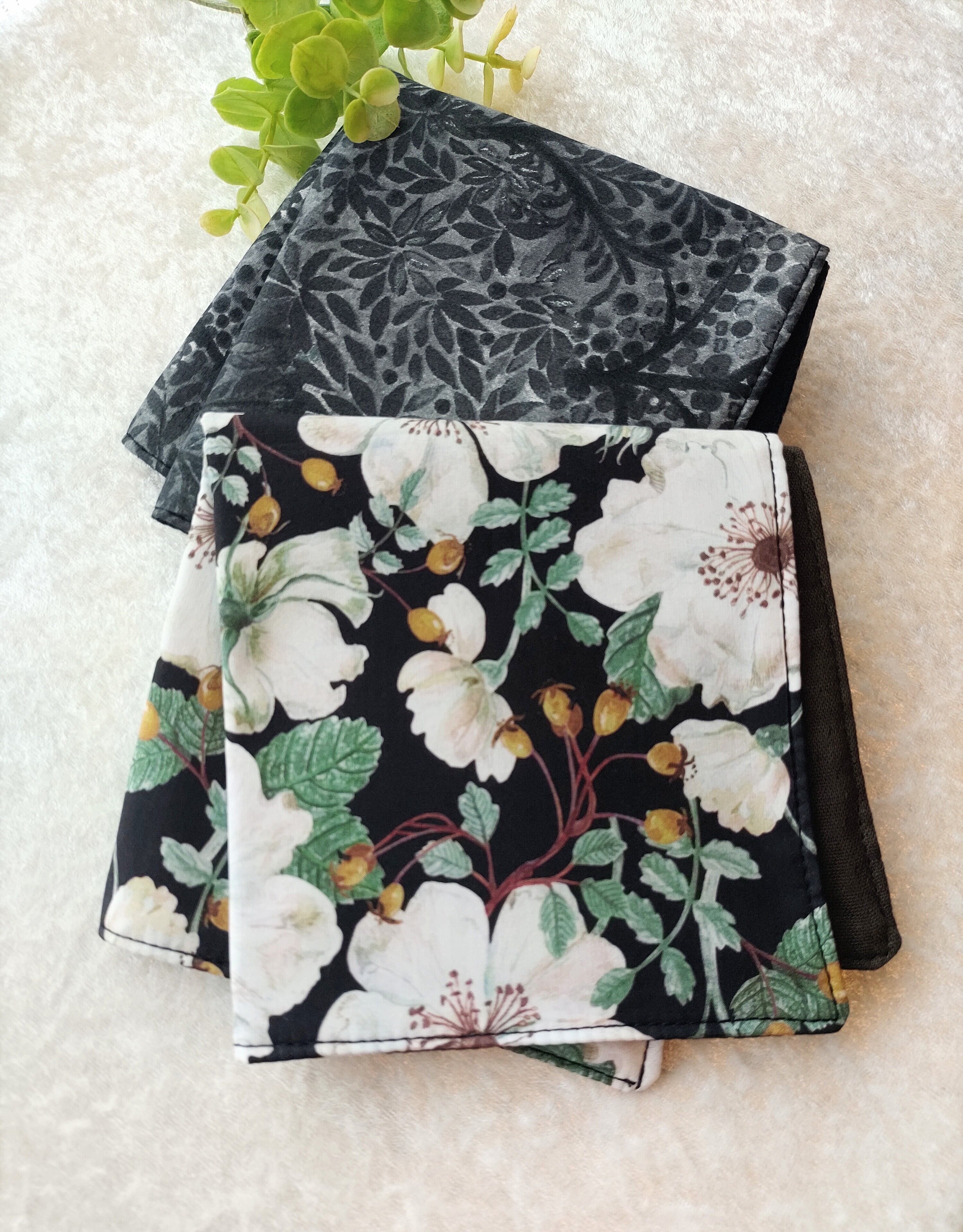こちらはリバティーのタナローンという《光沢あり》《高級感あふれる》《肌触りのよい》綿とガーゼ4枚を重ねて縫いあげた5重仕立てのハンカチです