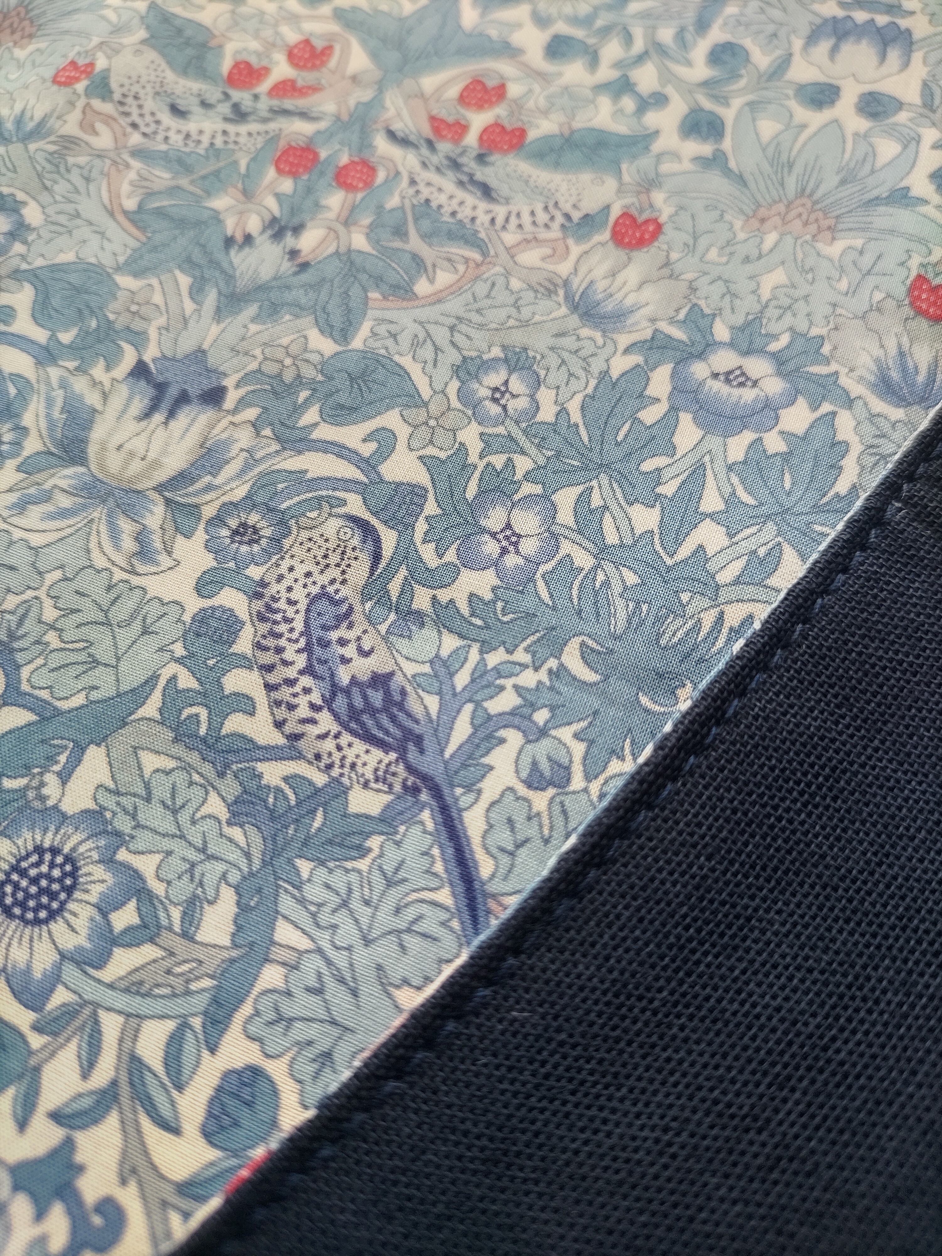 ガーゼ4枚+綿(リバティー)1枚を合わせて縫っている5枚重ねのハンカチです