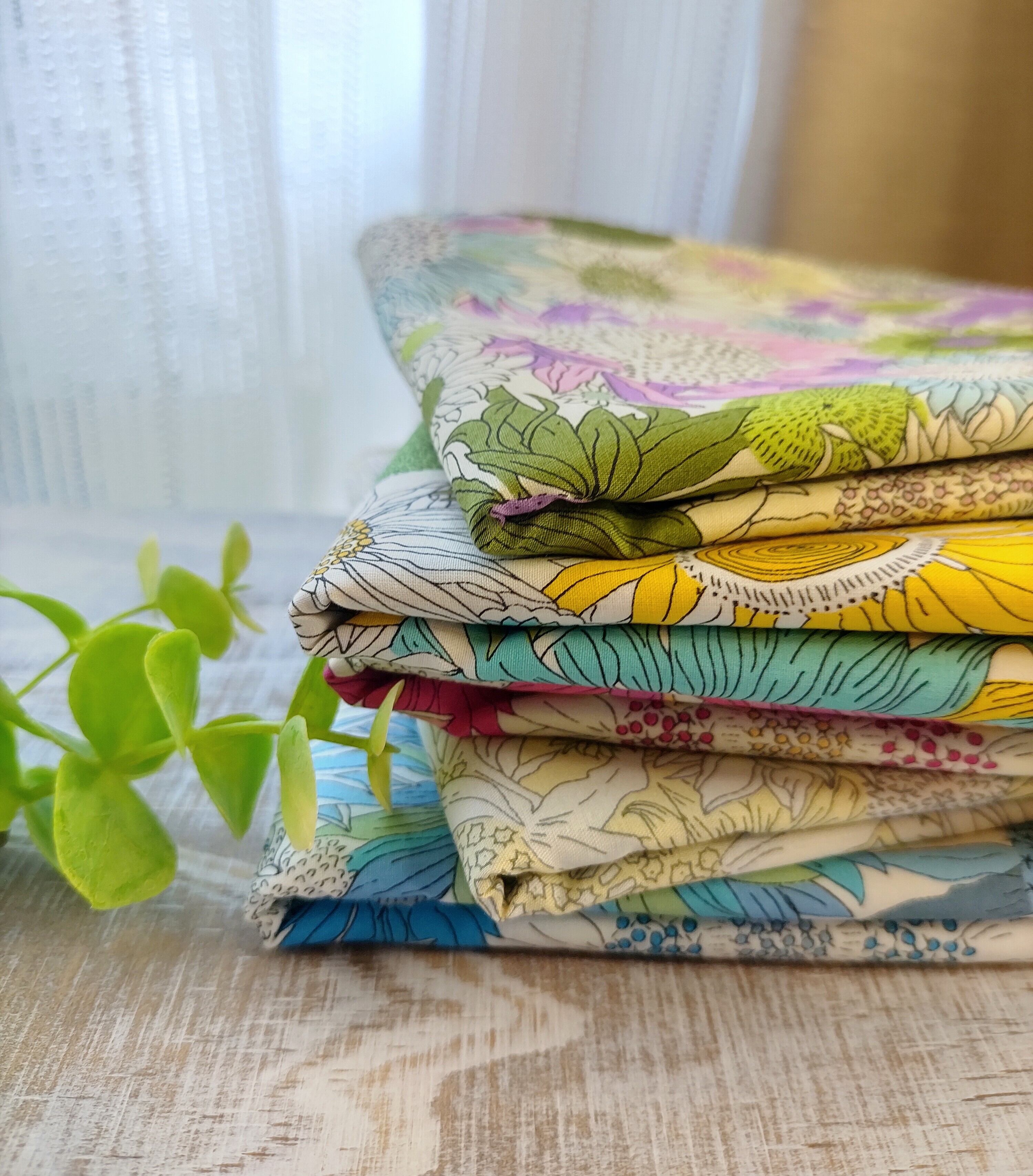 ガーゼ4枚+綿(リバティー)1枚を合わせて縫っている5枚重ねのハンカチです