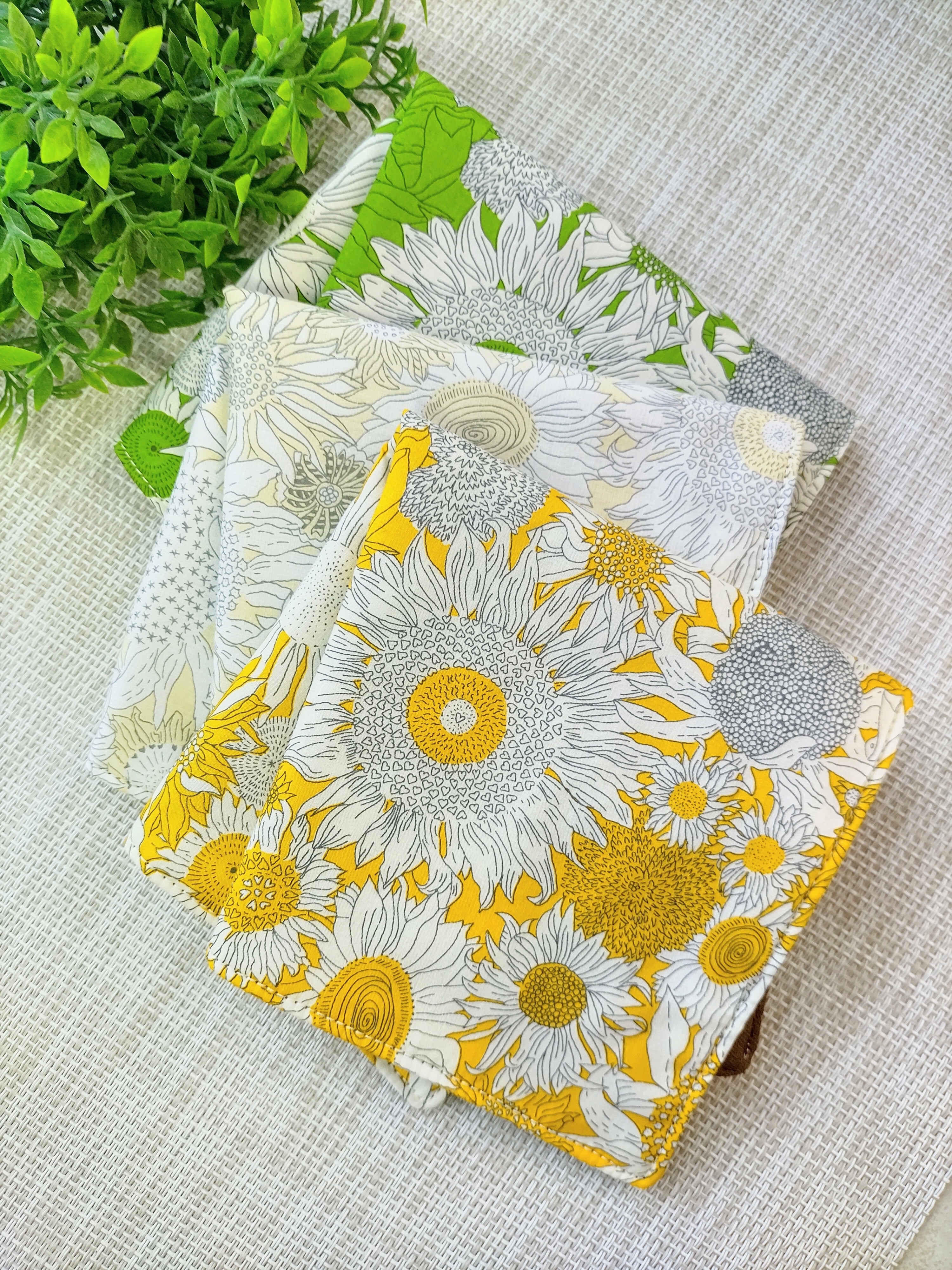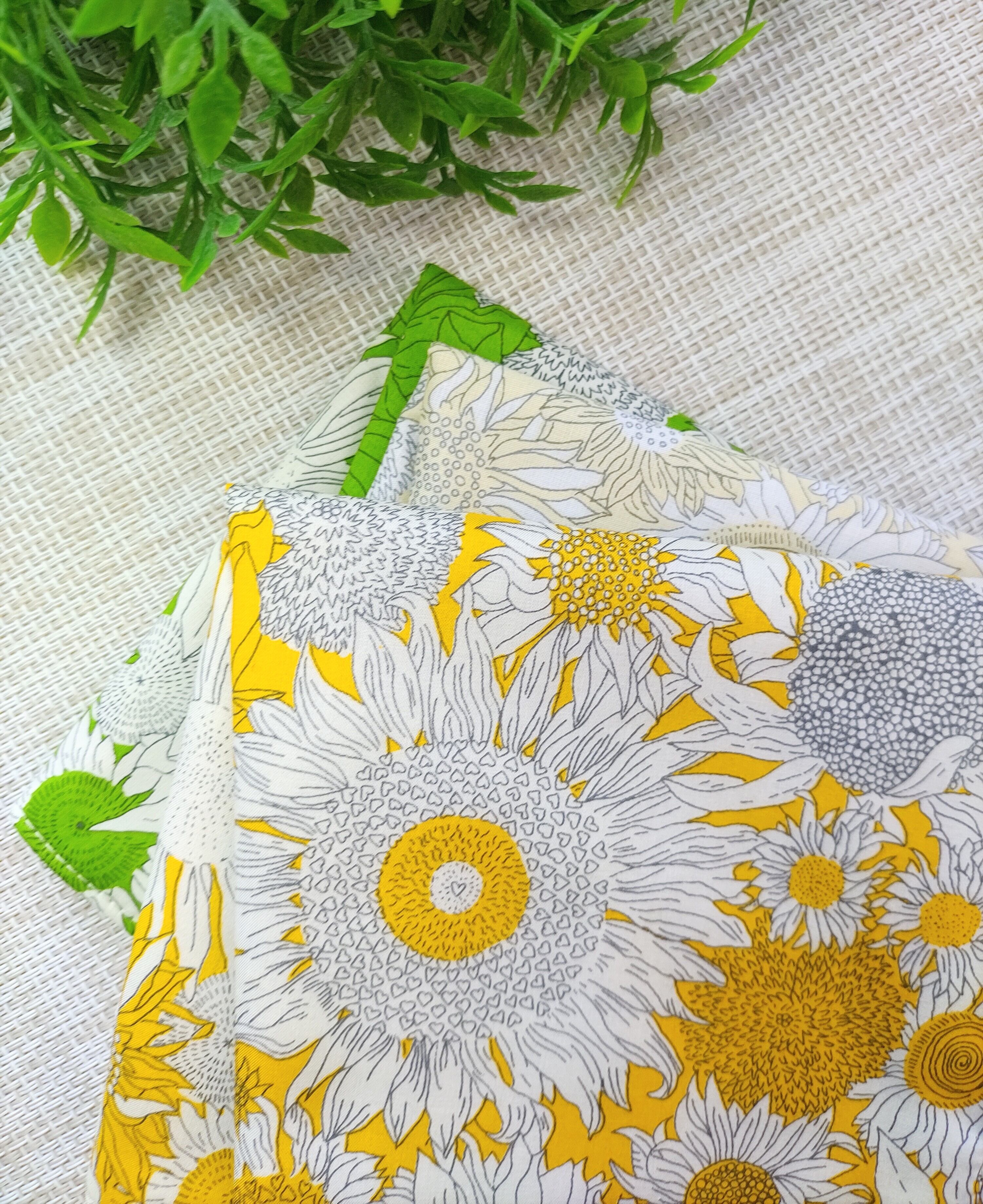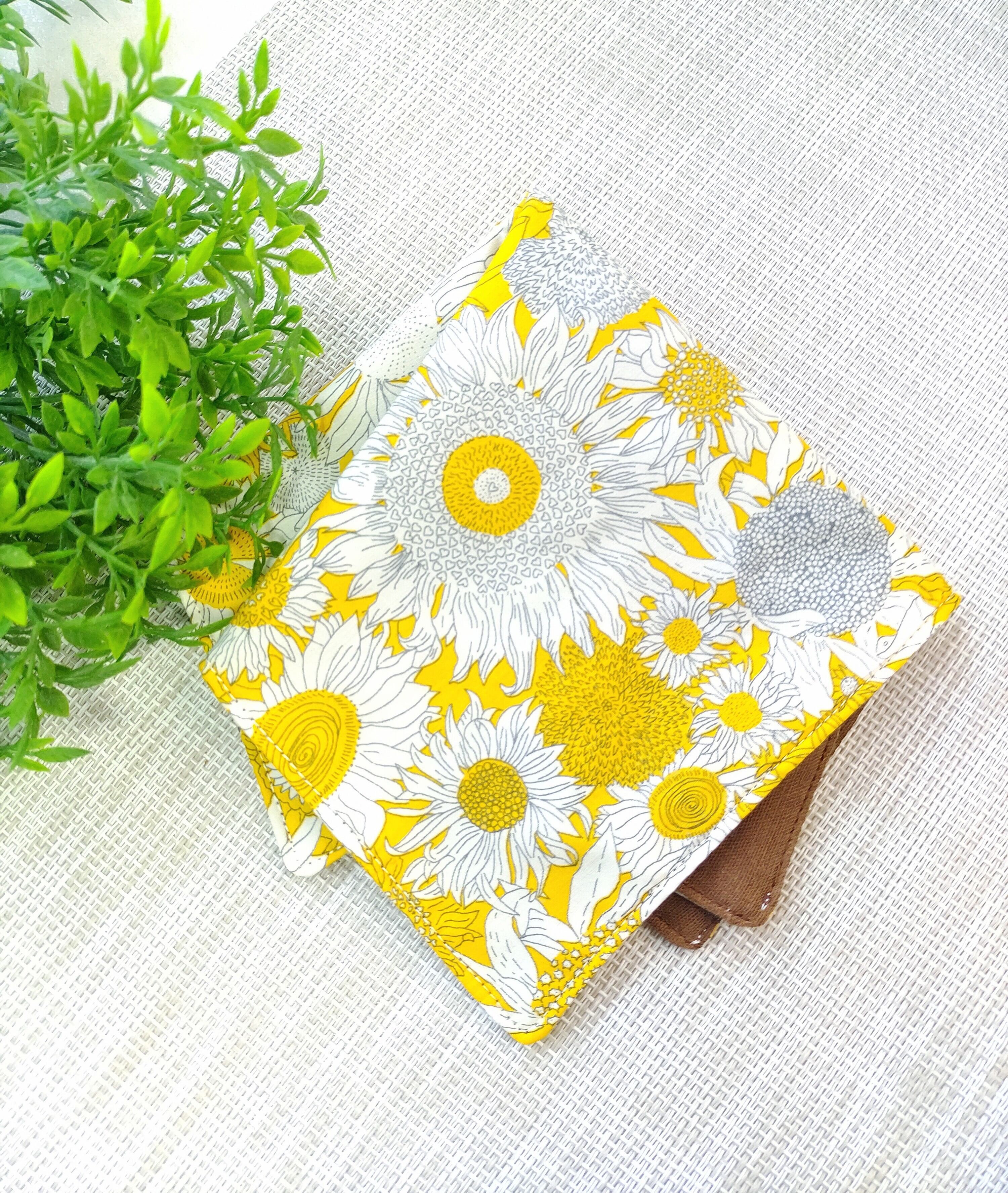 ガーゼ4枚+綿(リバティー)1枚を合わせて縫っている5枚重ねのハンカチです