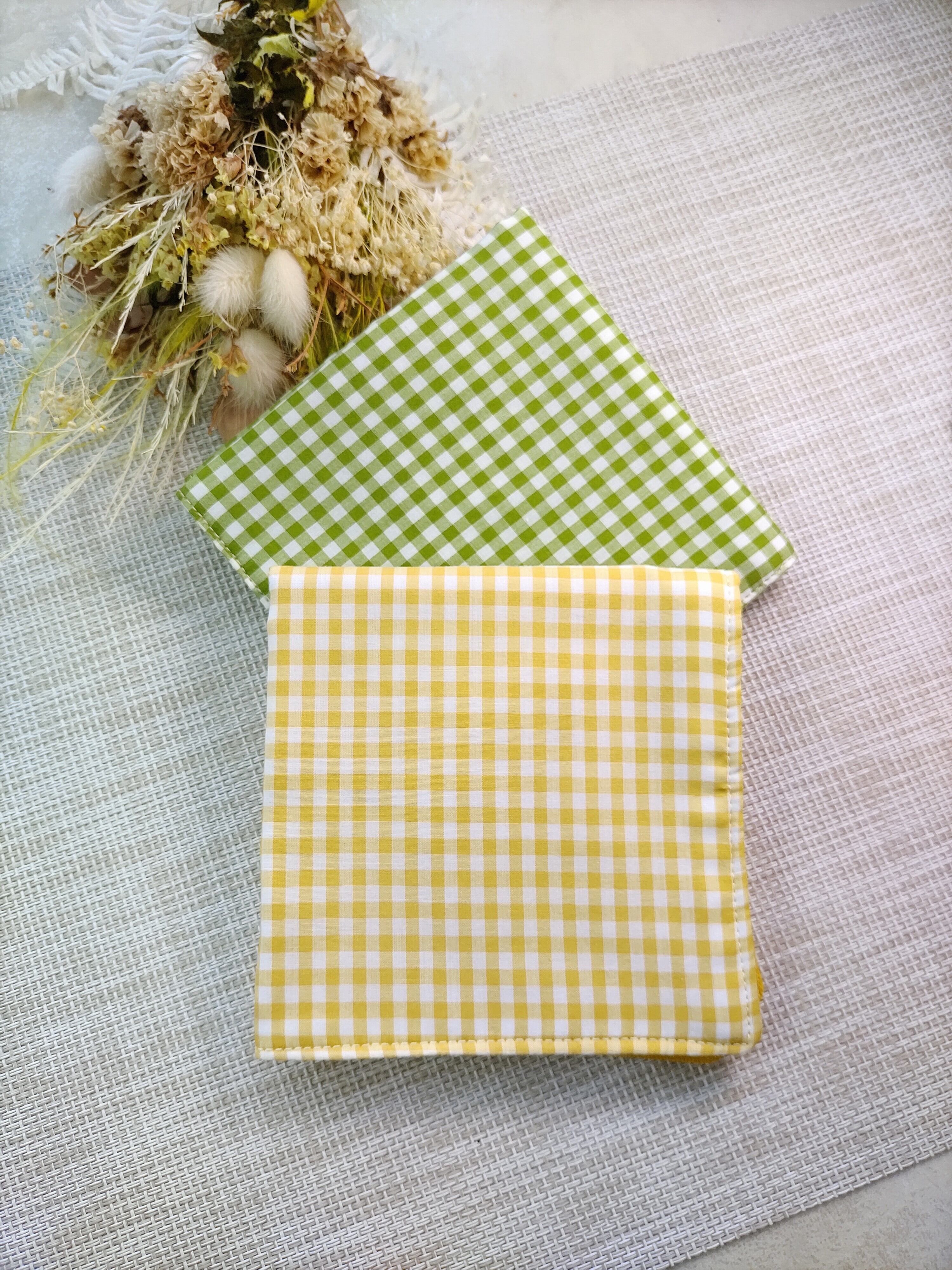《ギンガムチェック黄色》5重ガーゼハンカチ