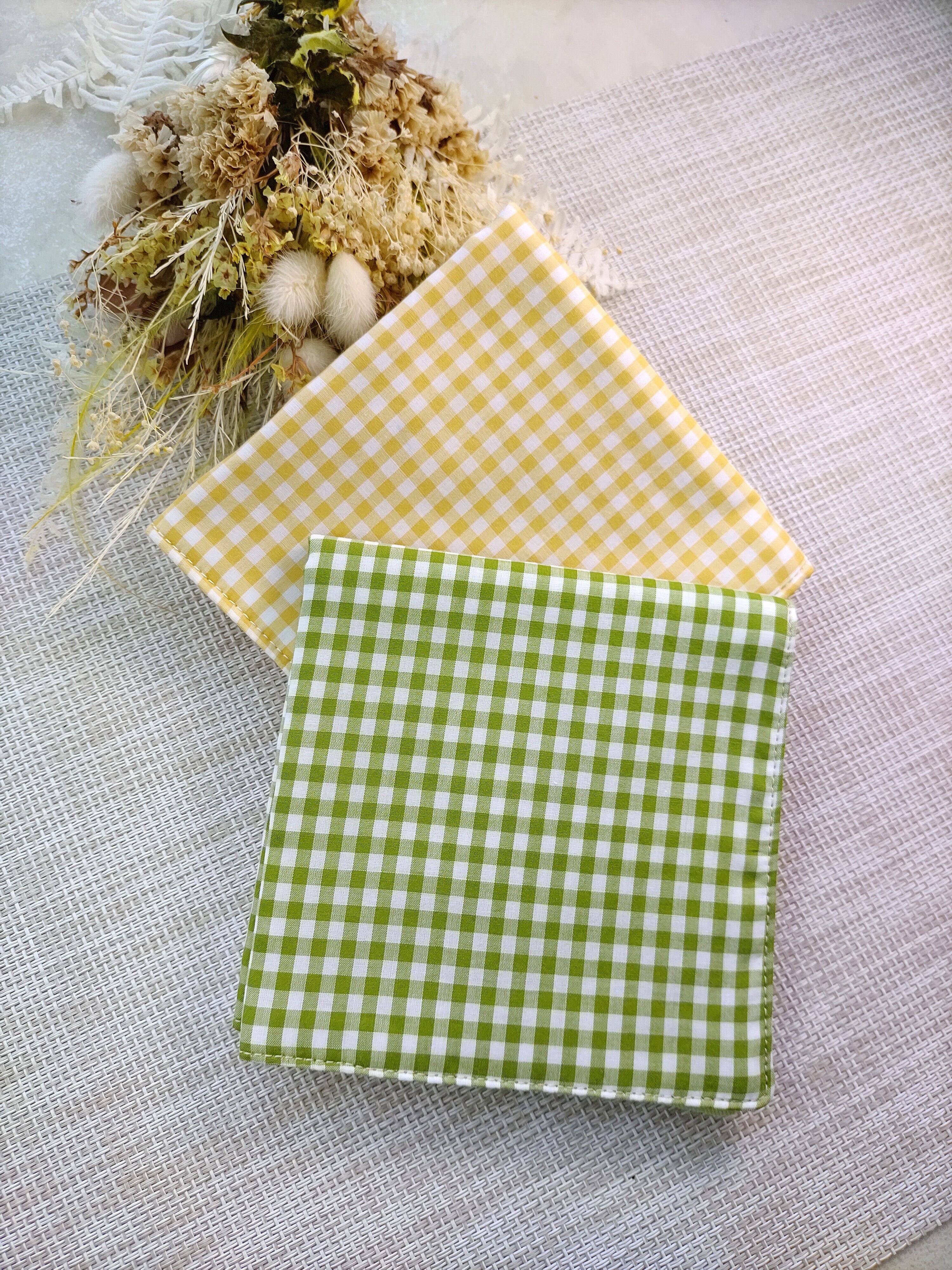 《ギンガムチェック黄緑》5重ガーゼハンカチ