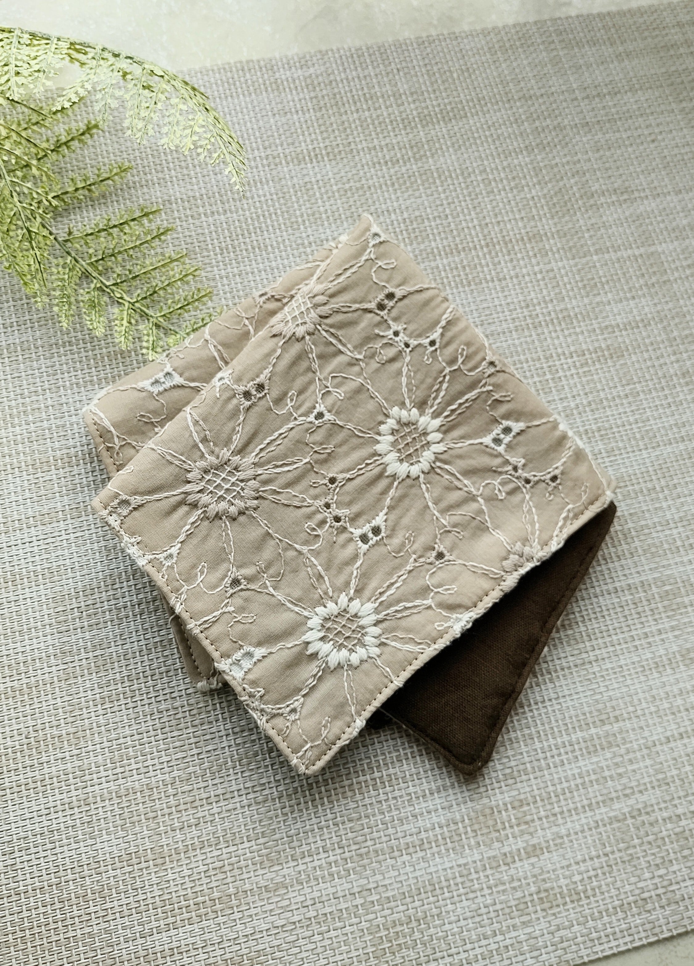 ガーゼ4枚+綿1枚を合わせて縫っている5枚重ねのハンカチです