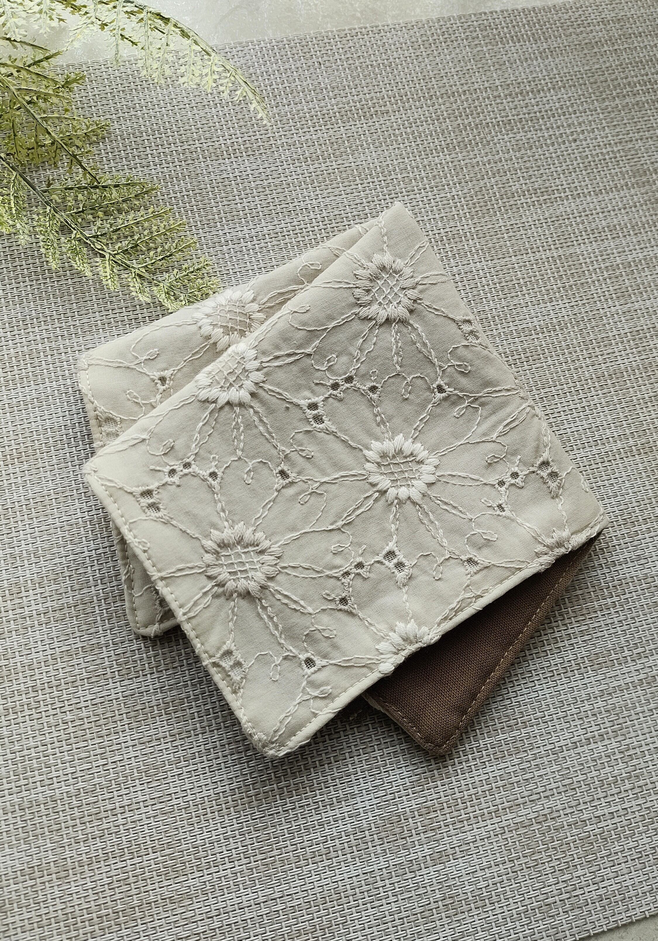 ガーゼ4枚+綿1枚を合わせて縫っている5枚重ねのハンカチです